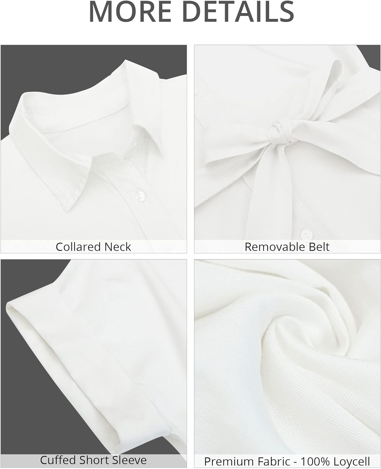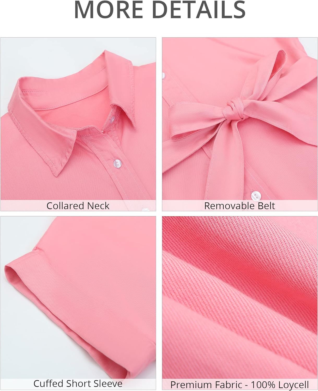 Our button down shirt dress features lapel collar, short sleeves with sewn cuffs, removable self-tie belt, front button down design and flowy swing hemline, helping show your feminine charm and elegance.