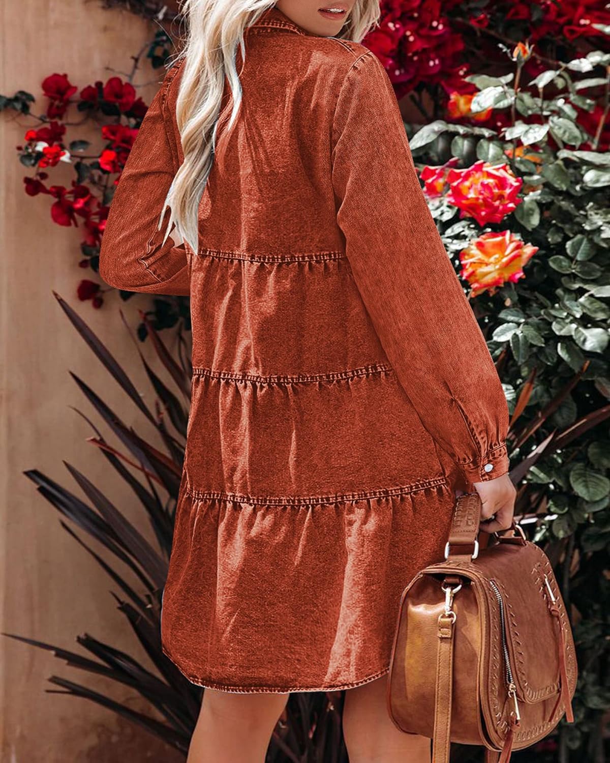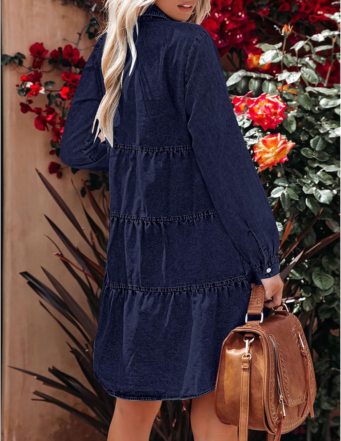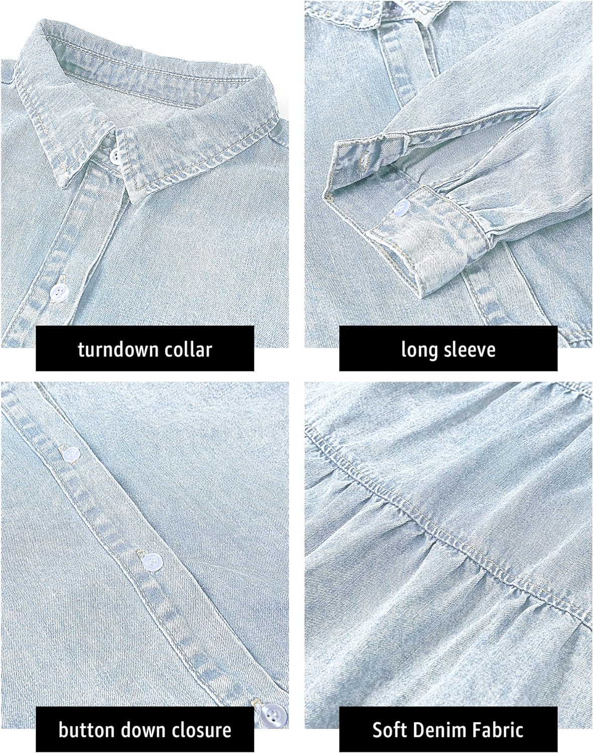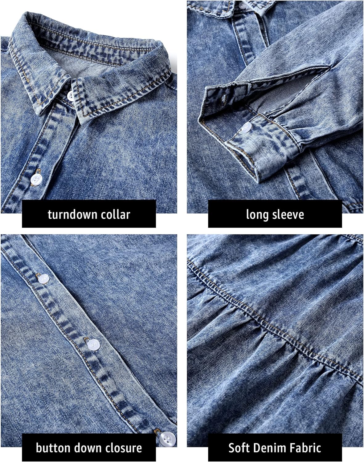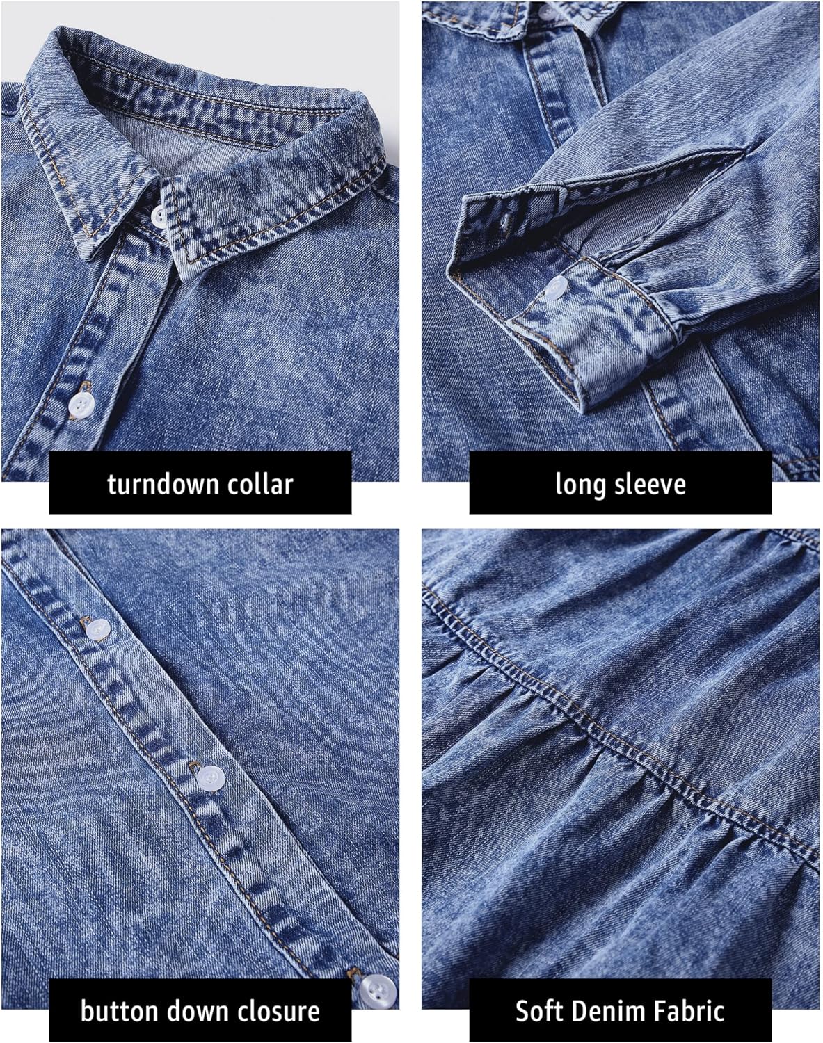 luvamia Denim Dress for Women Babydoll Flowy Cute Jean Shirt Dresses Long Sleeves