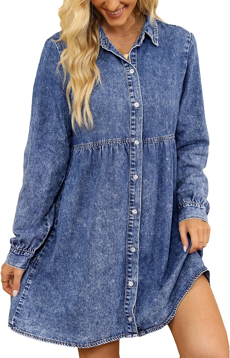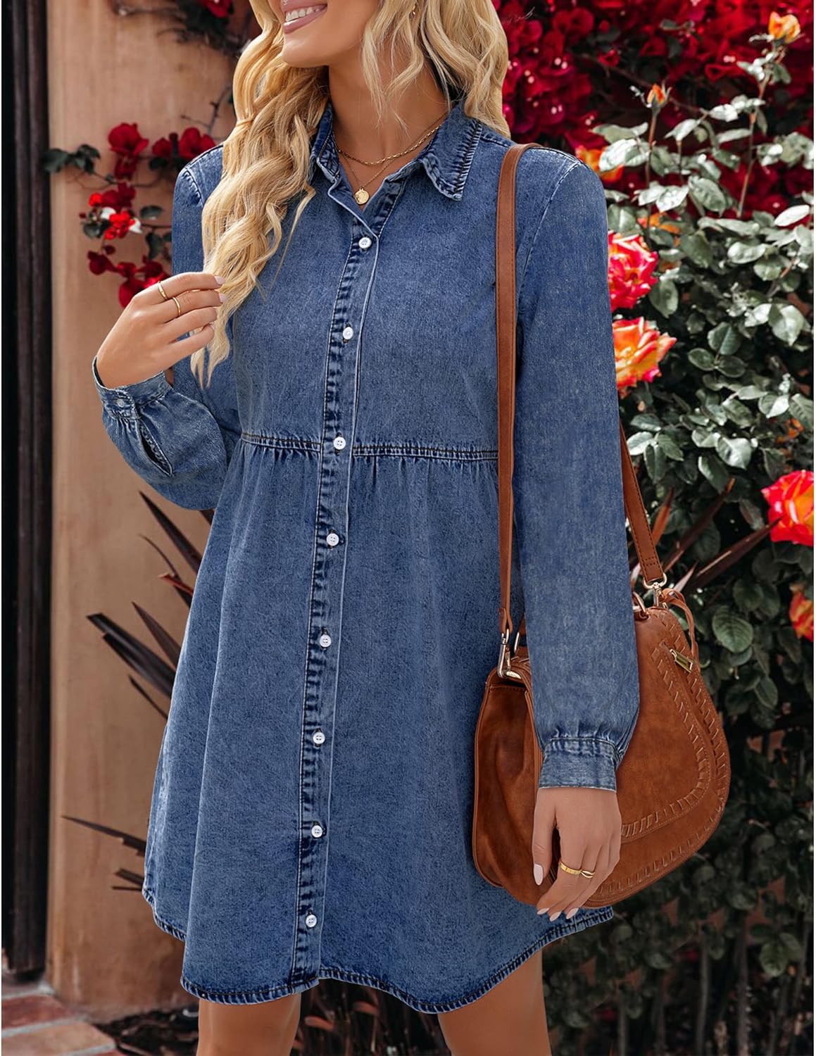 - Long sleeves babydoll dress for women, you can never go wrong with a short dress for women made with denim.
