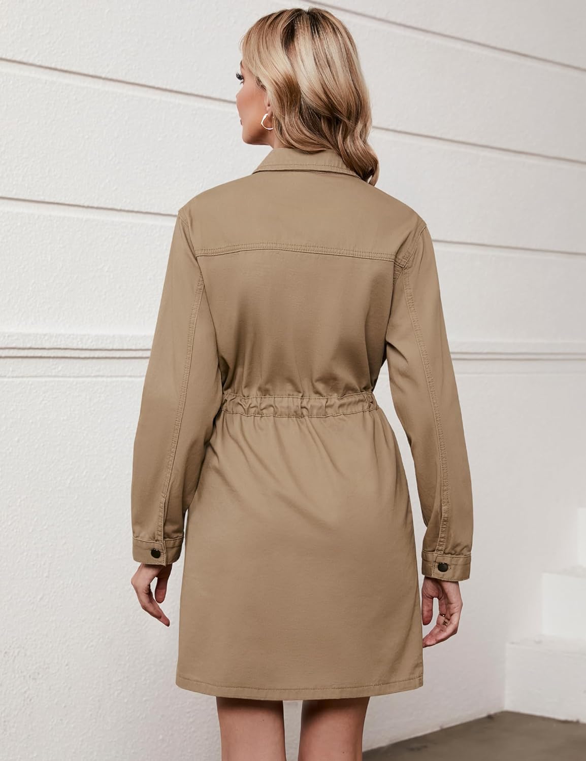 - The denim dresses for women come with 2 side pockets and 2 chest pockets. Adjustable drawstring waist easily cinch your waist to show the curve.
