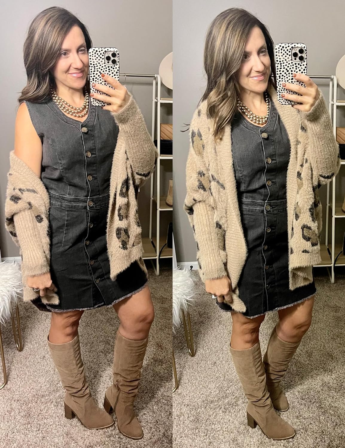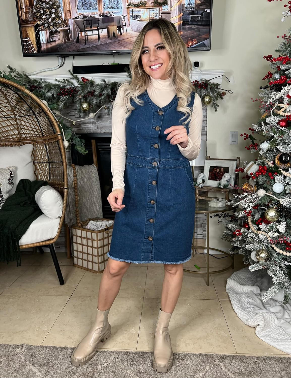 - Stay chic in this womens jean dress with boots and belt for an effortless edgy look.